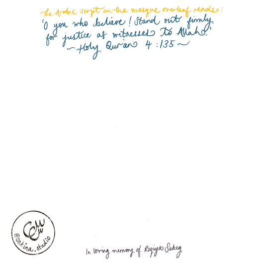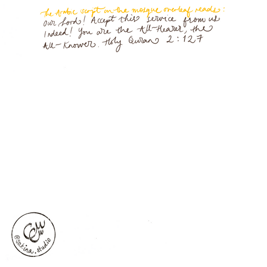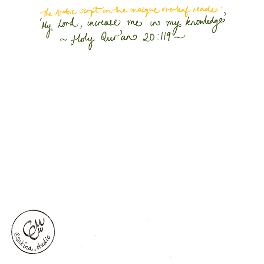 Grand Mosque in Memory of Roqiya - Gold Foil. All sales to Medical Aid for Palestinians